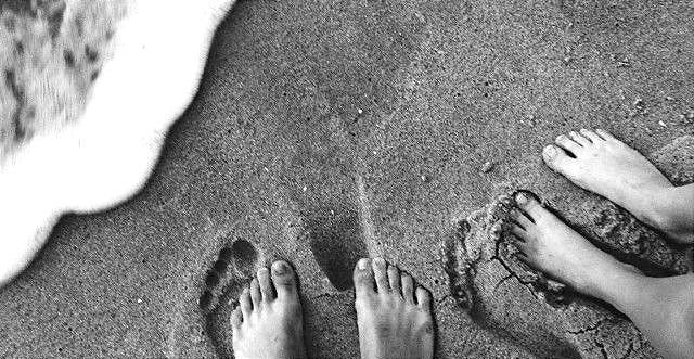 bare feet in cool sand.